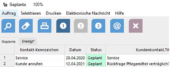 Eine eigens dafür gestaltete winIPRO Selektion zeigt die Wiedervorlagen, die Sie beim letzten Kundenbesucht angelegt haben und die jetzt fällig sind.