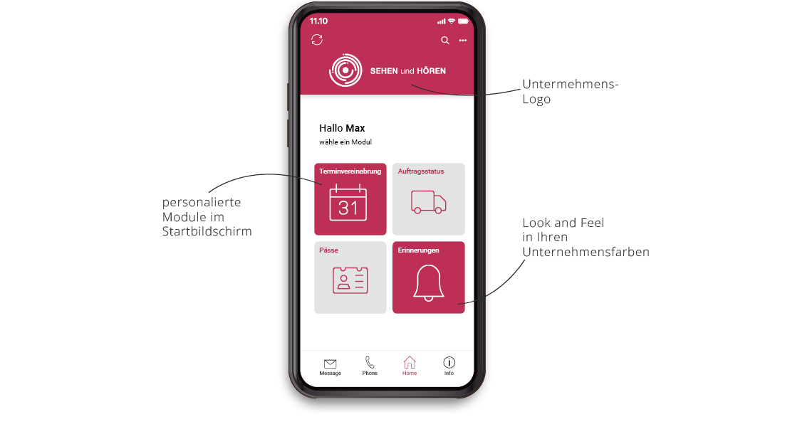 Ihr Kunde erkennt Sie beim Öffnen der SINNO-App anhand Ihres hinterlegten Logos und Ihren Unternehmensfarben direkt. Auch findet er hier wichtige und nützliche Informationen wie Ihre Öffnungszeiten, angebotene Leistungen oder eine Wegbeschreibung. APPen ist das neue Googlen.